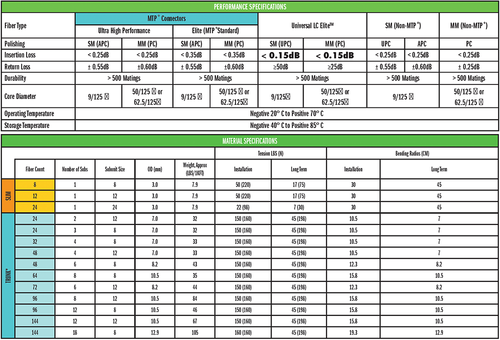 Ultra High Performance – Constructed with Corning® Bend Insensitive Fiber and best-in-class connectors (STANDARD)